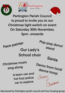 Partington Parish Council are proud to invite you to our Christmas light switch on event.